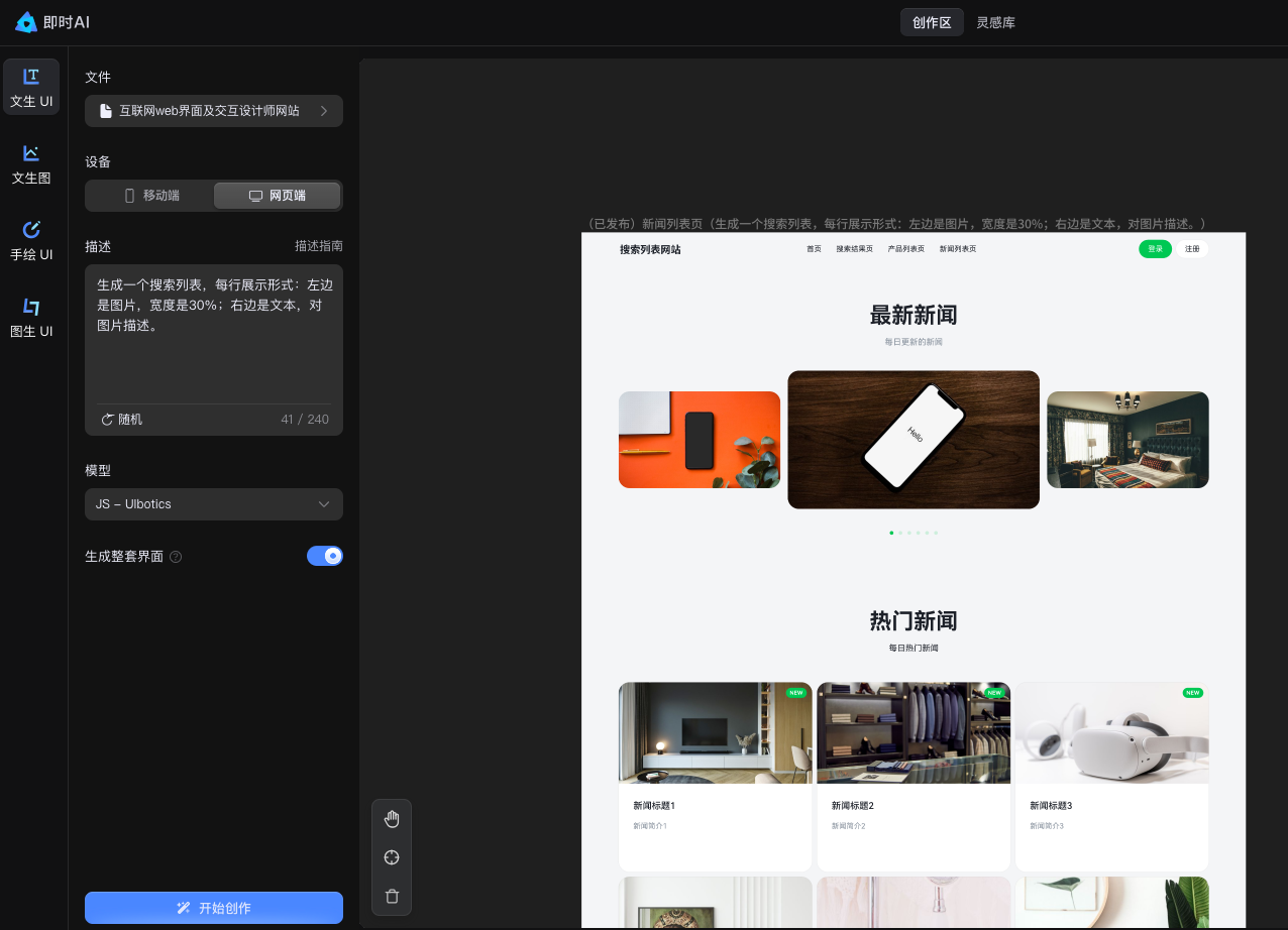 即时 AI 是一款基于生成式 AI 技术,通过 AI 生成 UI 设计稿的智能设计工具。其主要功能包括: